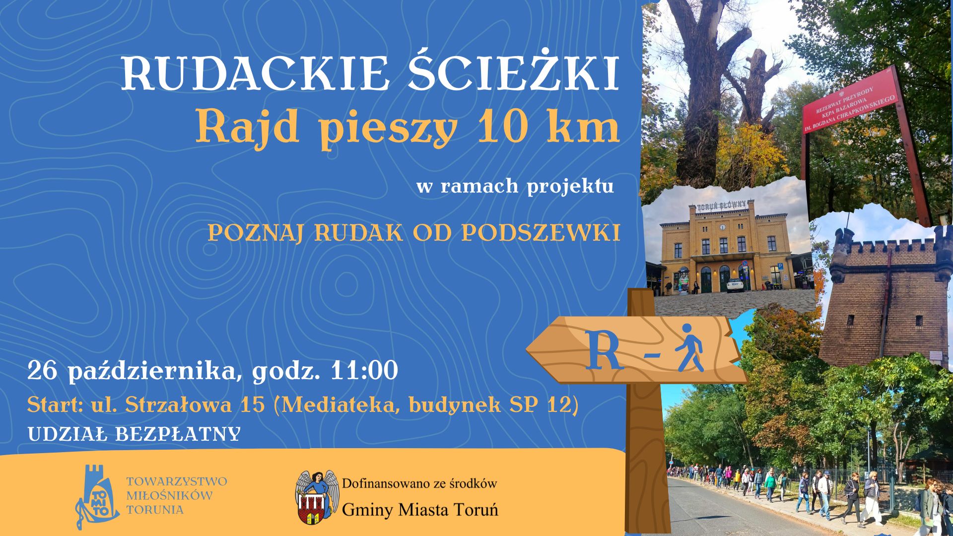 26 października (niedziela) Towarzystwo Miłośników Torunia zaprasza na trzeci pilotażowy rajd pieszy po Rudaku. Wspólnie z ekspertami i przewodnikami przejdziemy się projektowaną trasą niebieską o długości 10 km, którą przygotowujemy dla Was w ramach projektu „Poznaj Rudak od podszewki” realizowanego na zlecenie Gminy Miasta Toruń.