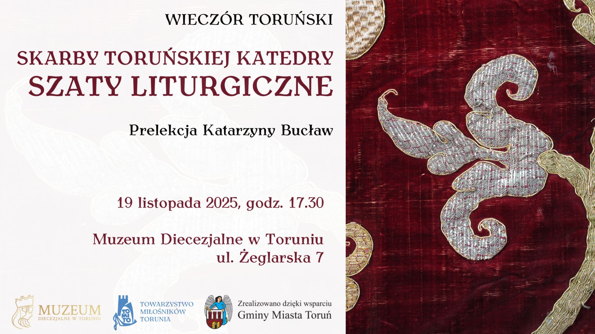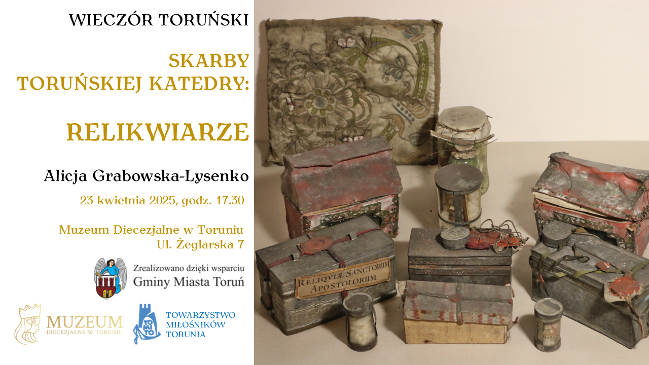Wieczory Toruńskie to cykl spotkań poświęconych dziedzictwu i historii Torunia oraz jego mieszkańcom. Prelekcje, dyskusje i tematyczne spacery odbywające się pod tym hasłem organizowane są przez Towarzystwo Miłośników Torunia w ścisłej współpracy z toruńskimi instytucjami kultury - Książnicą Kopernikańską, Muzeum Diecezjalnym, Muzeum Okręgowym i Centru, Kultury Dwór Artusa w Toruniu. Działanie realizowane jest dzięki finansowemu wsparciu Gminy Miasta Toruń. Na wszystkie wydarzenia z cyklu "Wieczory Toruńskie" obowiązuje bezpłatny wstęp. Serdecznie zapraszamy!